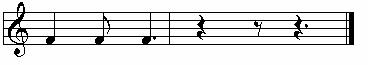 There are two new elements that you are yet unfamiliar with. If you look closely at the last note and the last rest you will notice that they have a small dot after them. A dot after a note or rest adds half the value of the note.