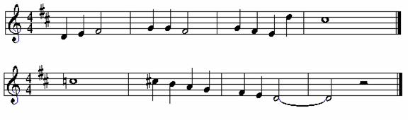 In Figure 2f, notice that the second staff of the sample music uses a natural accidental to change the C#, (C sharp), as defined by the key signature, to a C natural. The next measure changes it back to a C#.