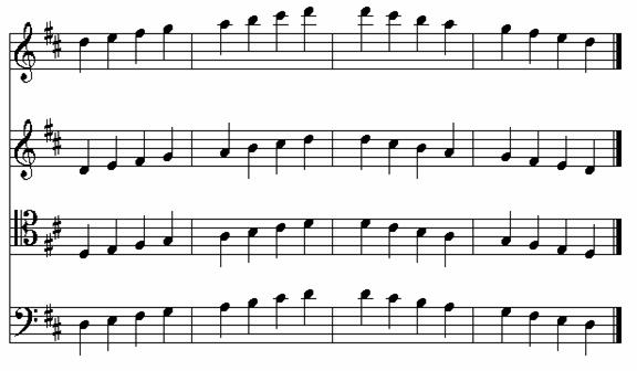 This is a grand staff. If you said it was the D major scale you would have been correct. In the next few sections, we are going to take a look at each of the clefs and define what makes each of them unique. When you are ready, proceed to the next section and we will begin by taking a closer look at the Treble clef.