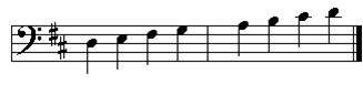 Again we look at the D Major Scale, but in another clef. Can you see why it is call the F clef? Hint: There are two reasons.