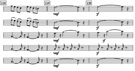 - If you were to place a dynamic variance between measures 119 and 120, what variance would you use to describe the shift from *mf to *f?